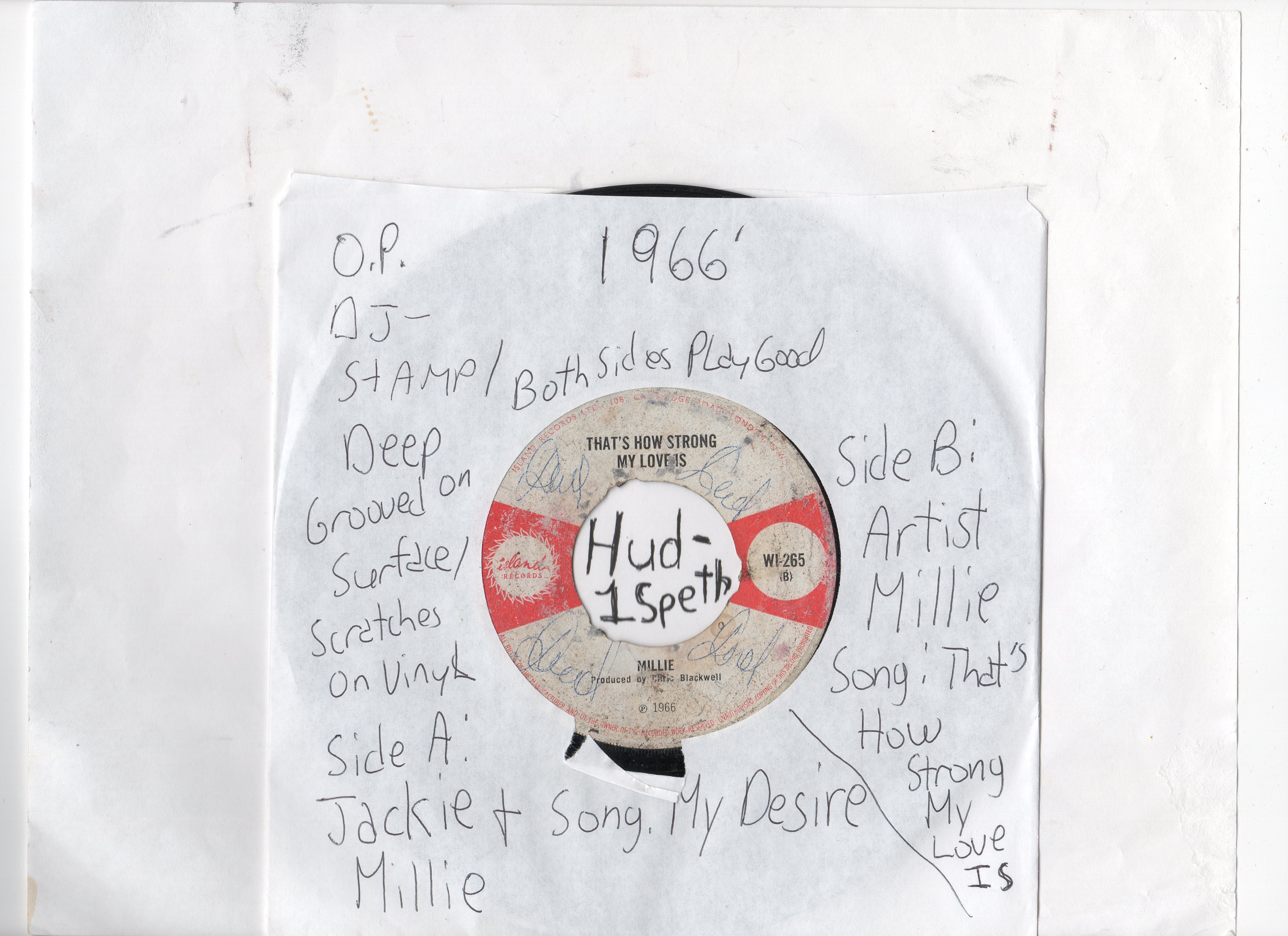 ISLAND RECORDS artist: Jackie And Millie side A: My Desire / MILLIE side B: My Desire