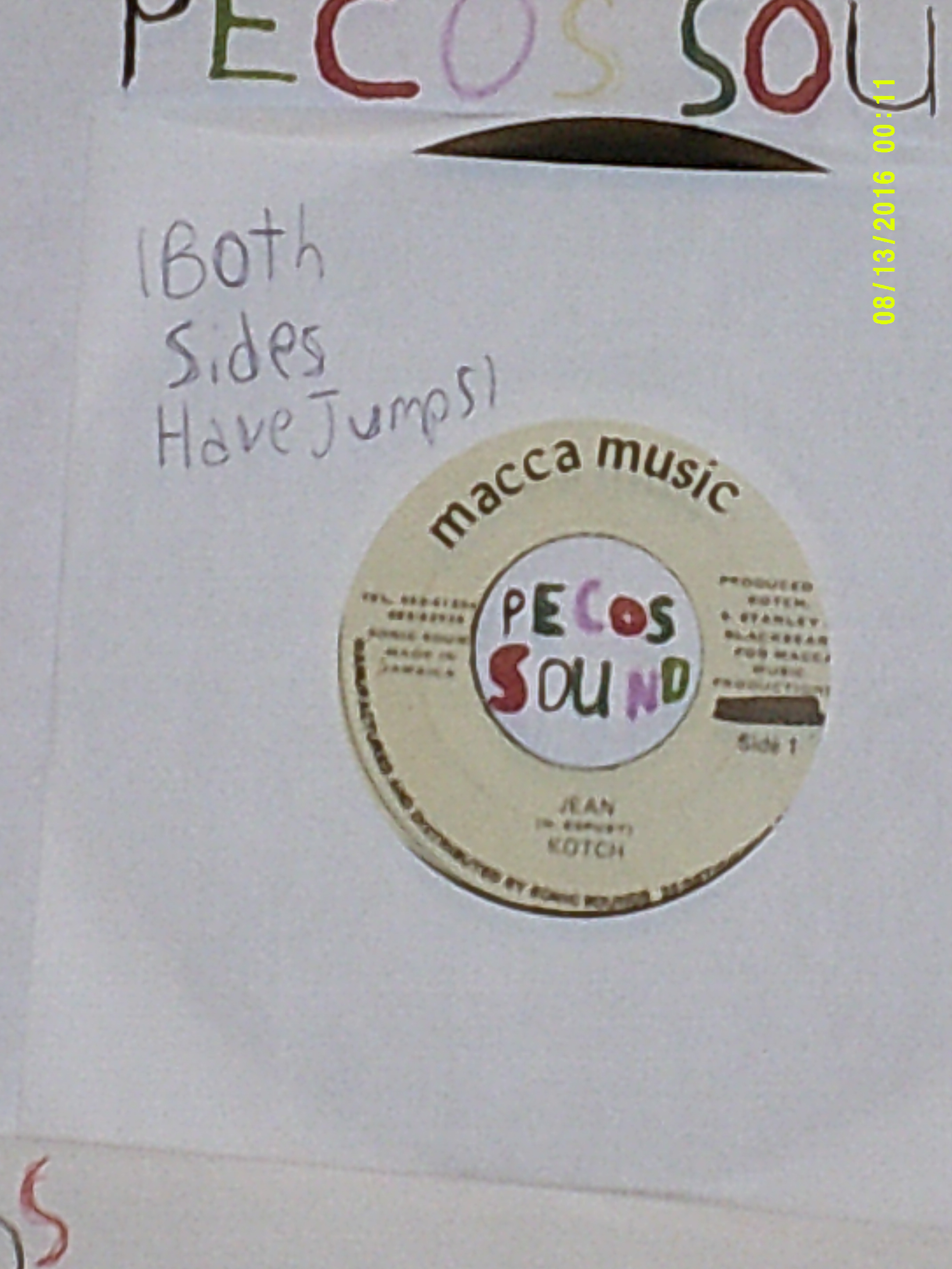 Kotch side A: Jean / side B: In-Space Dub label: Macca Music year: 1980’s Style Original Press Jumps on sound Classic 1980’s Roots Lovers Rock Selection